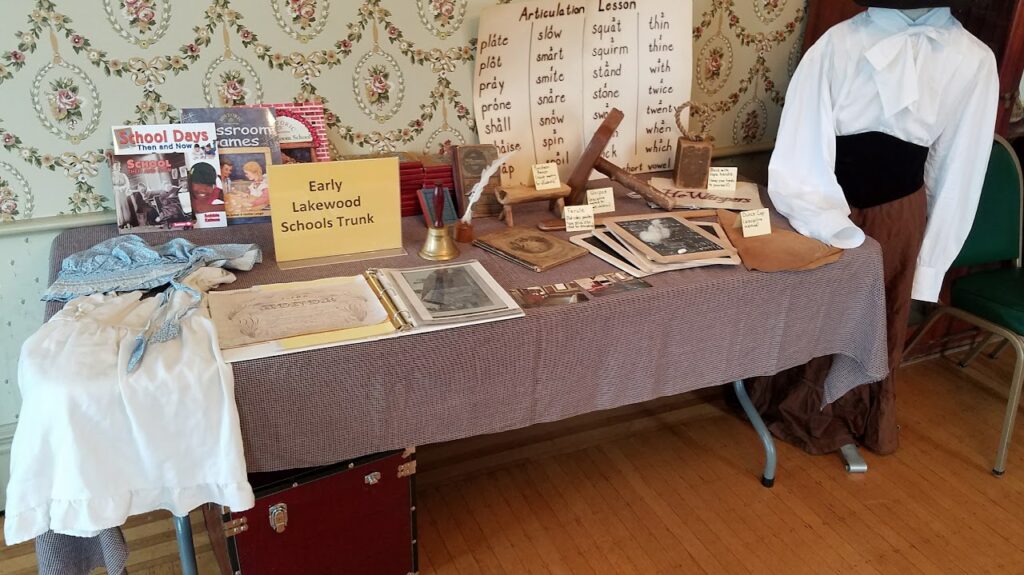 Experience what education was like in the early days of Lakewood. One-room schools, potbelly stoves, and children writing on slates and reading from McGuffey Readers are some of the topics. Discipline has changed a great deal since those times, so the trunk includes a dunce cap and other methods teachers would use to maintain order. Photos of the early schools and the students and teachers give modern audiences a glimpse into the classrooms of a time gone by.